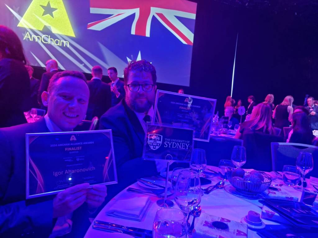 A nice night at the American Chamber of Commerce in Australia awards at the ICC in Sydney. A great showing from Sydney, with four of the five nominees coming from the University of Sydney and the University of Technology Sydney.